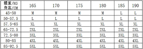 | 尺碼(cm) | 衣長 | 胸圍 | 肩寬 | 袖長 |